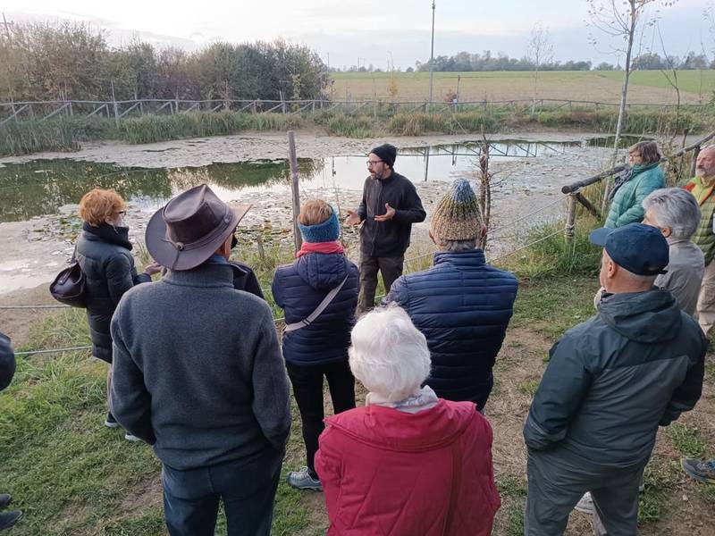 Adesso allora nel laghetto è tempo anche lì di potature perché stiamo togliendo tutta la vegetazione delle canne, dell'iris, delle carex, in modo che possano ristoppiare bene la prossima primavera senza avere tutta la vegetazione morta sopra. Andiamo a tagliare e compostiamo il materiale che viene via. Nel laghetto ci sono ancora alcune larve che stanno facendo le ultime metamorfosi, ma più o meno questo tipo di ciclo si è chiuso e adesso è piuttosto una vita subacquea, una vita di fondo. Anche gli uccelli acquatici sono a riposo. Quindi animali in questo momento ce ne sono pochi. Chi iva al caldo se n'è già andato e non è più qua. Sono arrivati invece gli ospiti dal nord, quindi abbiamo iniziato a vedere un po’ di pettirossi che girano e loro passeranno poi l'inverno un po’ più al caldo rispetto ai paesi del Nord.